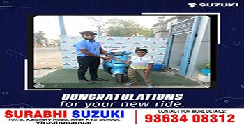 Established in 2024, SURABHI SUZUKI, Katchery Road is one of the most well-known and trusted Suzuki Bike Showroom in Virudhunagar. SURABHI SUZUKI is an authorised Suzuki Motorcycle Dealer with a state-of-the-art showroom where you can check out the new Avenis,take it out for a test ride, and book your dream ride. On our website, you can explore the entire range of two-wheelers by Suzuki Motorcycles. You can also find out the ex-showroom price of different variants, calculate EMI, get a callback, and even book a suitable time slot for a test ride. Check out your favourite Suzuki motorcycles and scooters conveniently, with the easy-to-use filters to simplify your search. SURABHI SUZUKI offers the entire range of Suzuki Motorcycles, Big Bikes, and Scooters in the Avenis from SURABHI SUZUKI,check out its features, take it for a ride, get a quote, and book your favourite bike from the entire range of Suzuki motorcycles and scooters in. At SURABHI SUZUKI, you can also avail two-wheeler finance to buy your favourite ride.